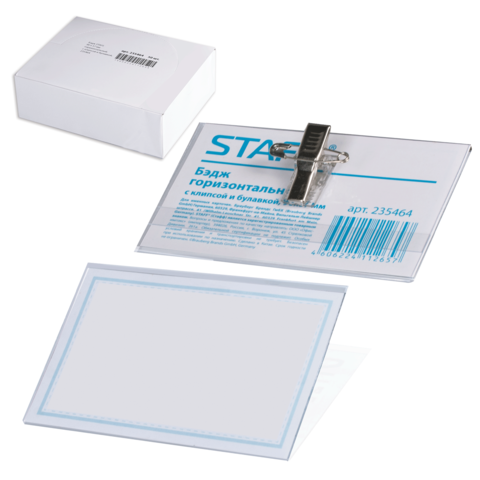 Бейдж горизонтальный 90х57 Staff 235464 с клипсой и булавкой
