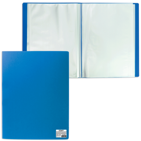 Папка A4 с 30 прозрачными вкладышами Staff 225696 эконом, синяя, 0.5мм