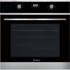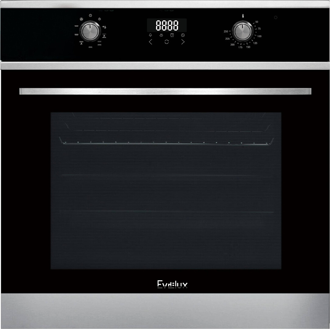 Духовой электрический шкаф Evelux EO 635 PX 60 см, 9 режимов, 71л, утапливаемые переключатели, дисплей Snow White, панель управления - черное стекло, нержавеющая сталь, универсальный проти