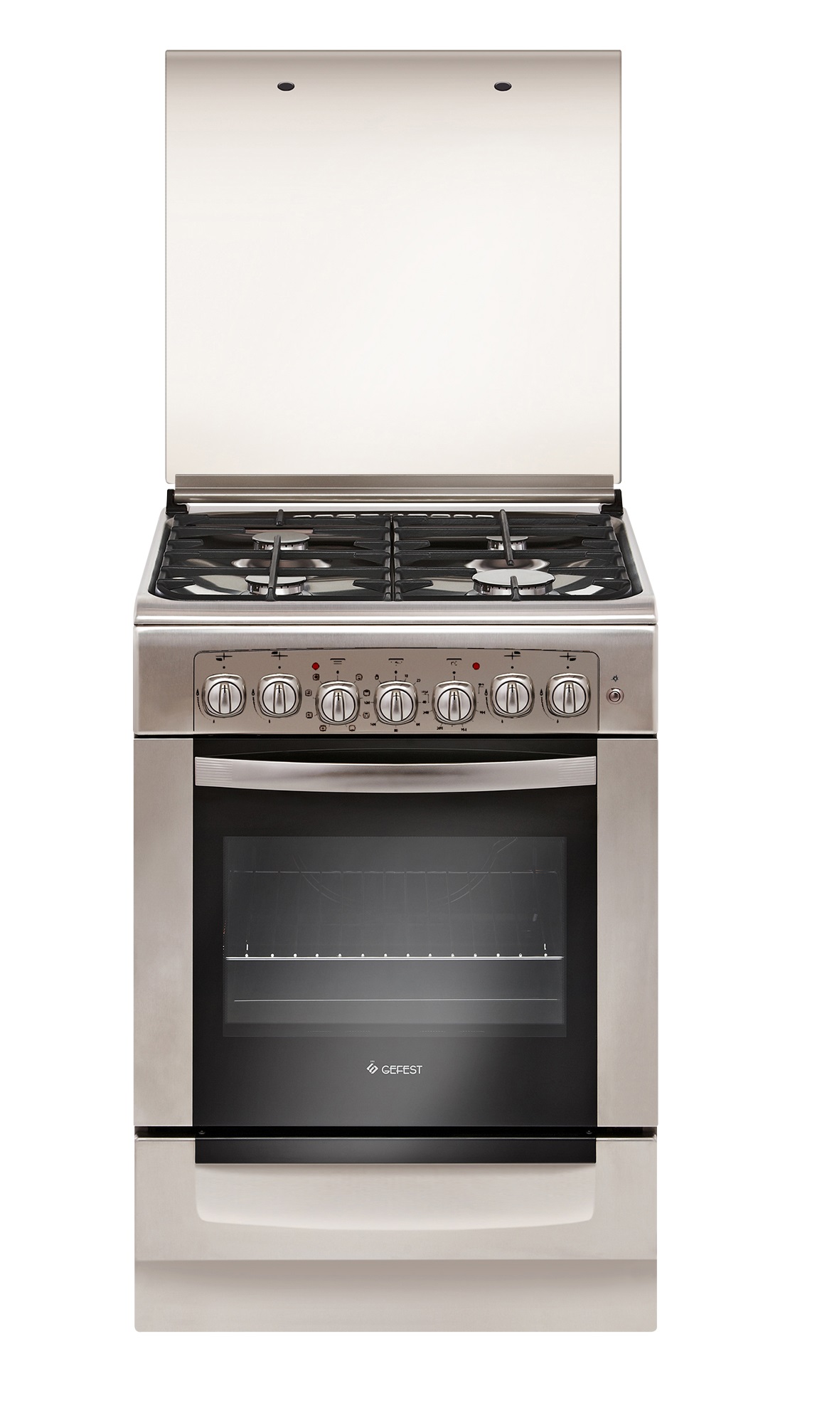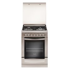 оснащена чугунными решетками, которые предупреждают опрокидывание посуды небольшого диаметра. Покрытие из нержавеющей стали отличается легкостью при устранении загрязнений. Специальная кнопка позволяет активировать функцию электрического розжига. Регулировка интенсивности нагрева производится через поворотные переключатели. обладает духовым шкафом объемом 55 л. Режим гриля с конвекцией способствует формированию хрустящей корочки на продуктах. Вертел придется как нельзя кстати для запекания мяса. С помощью подсветки хозяйки могут отслеживать течение кулинарного процесса. Внутри выдвижного ящика помещается различная кухонная утварь. Регулируемые ножки обеспечивают устойчивое положение прибора. | ||