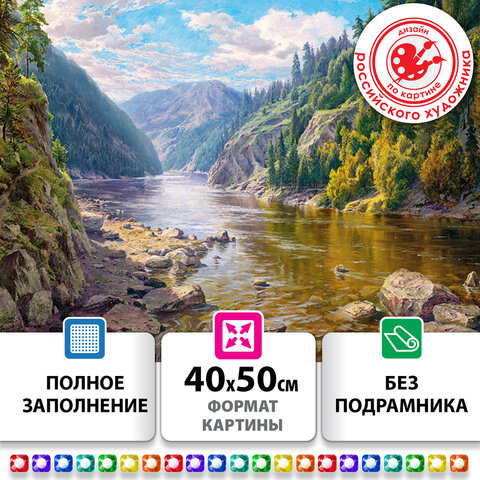 Картина стразами алмазная мозаика, Остров Сокровищ 663867 Горная речка, 40х50см, без подрамника