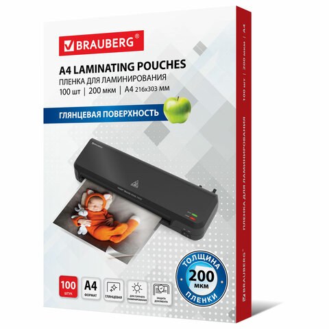 Пленки-заготовки для ламинирования А4 Brauberg 531777 комплект 100 шт, 200 мкм