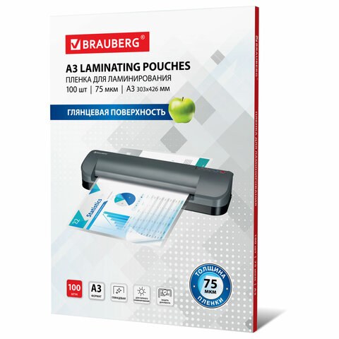 Пленки-заготовки для ламинирования Brauberg 530894 А3, 100 шт, 75 мкм