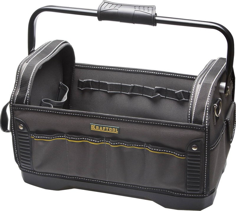 Сумка для инструментов Kraftool 38741 46см, 8 петель-держателей, жесткое пластиковое дно, каркасная с 20 карманами