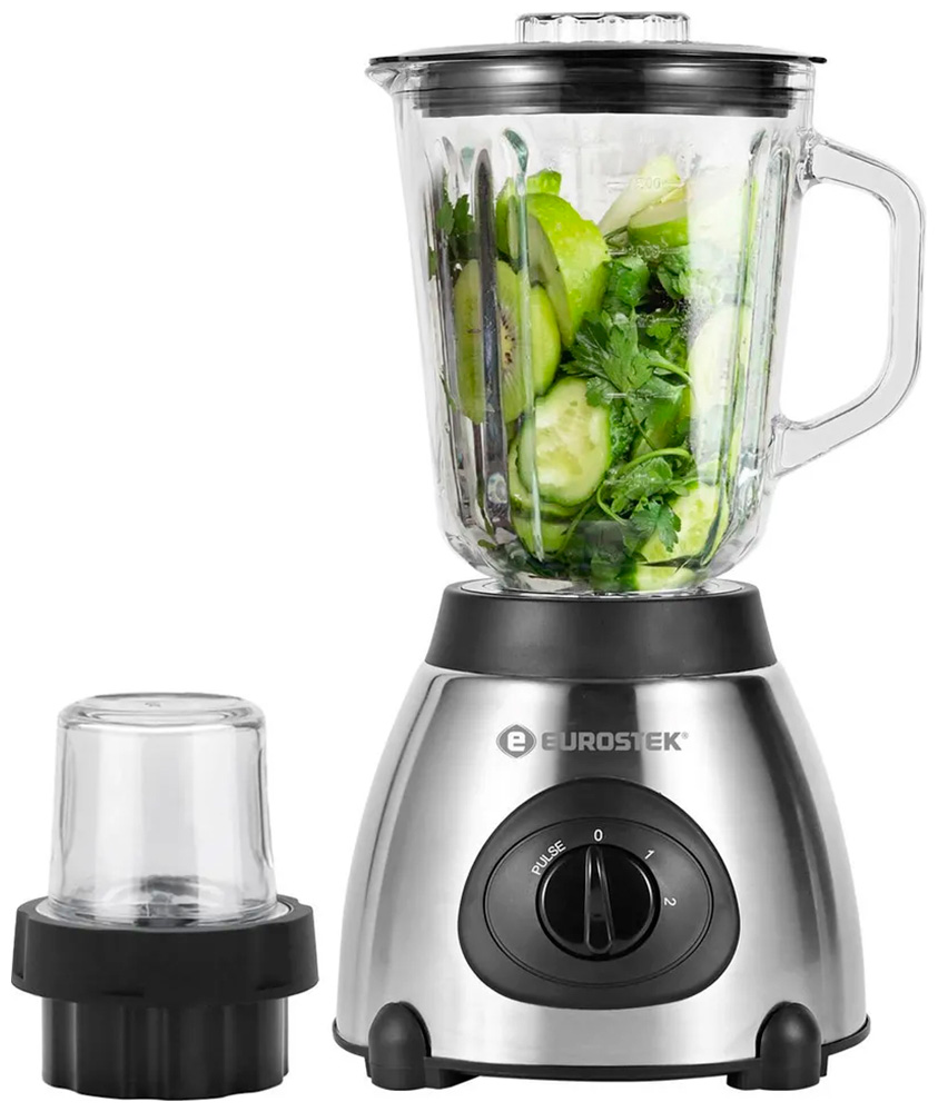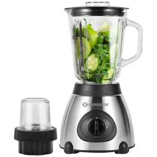 Корпус из нержавеющей стали. 6 лезвий у ножа.Съемный нож из нержавеющей стали. Стеклянная чаша объемом 1.5л. Мерный стаканчик. Кофемолка 0.25 л. 2 скорости + импульсный режим.Крышка с отверстием для добавлен | ||