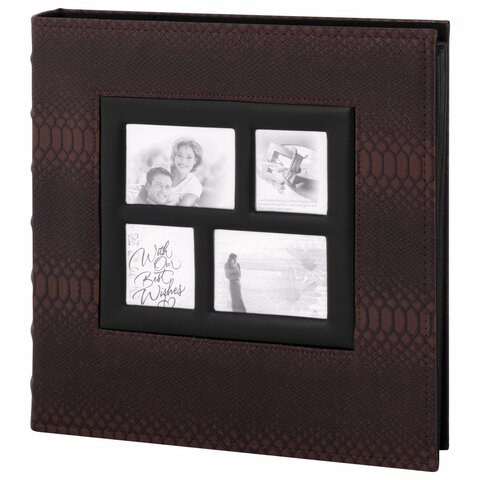 Фотоальбом Brauberg 390680 на 500 фотографий 10х15 см, обложка под кожу рептилии, рамка для фото, бокс, коричневый