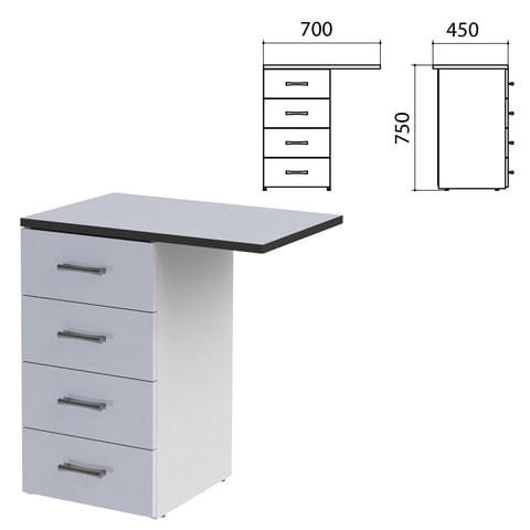 Тумба приставная Монолит, 700х450х750мм, цвет серый комплект