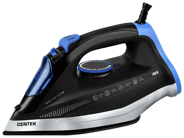 Автоматическое отключение - нет; Автоматическое сматывание шнура - нет; Автоотключение при опрокидывании - нет; Вертикальное отпаривание - есть; Материал подошвы - керамика; Мощность пара, г/мин - 35; Мощность,Вт - 2400; Паровой удар, г/мин - 135; Противокапельная система - есть; Система самоочистки - есть; Цвет - черный/голубой/серебро; Шаровое крепление к корпусу - есть; | ||