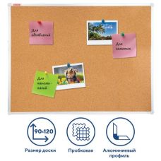 Доска пробковая для объявлений Brauberg 236445 90х120см, алюминийиниевая рамка