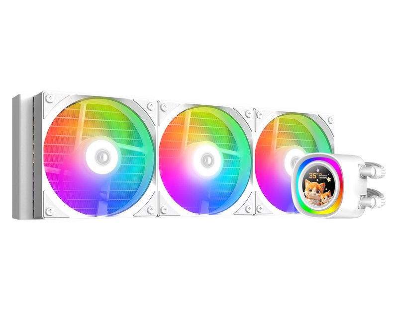 Комплект водяного охлаждения ID-CoolING FX360 LCD White LGA1851/1700/1200/115X/AM4/AM5 TDP 350W, ARGB вентилятор and PUMP, LCD Display, PWM, Triple вентилятор 120мм, белый