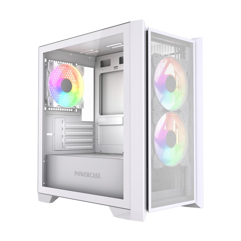 Корпус mATX без БП Powercase CAMZW-A3-V2 Alisio Micro Z3W ARGB V2, Tempered Glass, 3x 120мм ARGB fan, белый