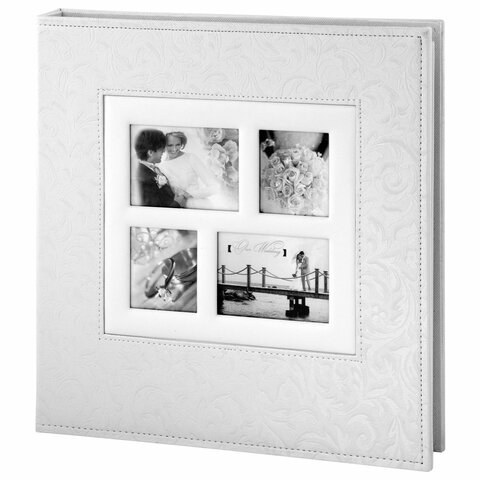 Фотоальбом Brauberg 390691 свадебный, 20 магнитных листов 30х32 см, обложка под фактурную кожу, на кольцах, белый