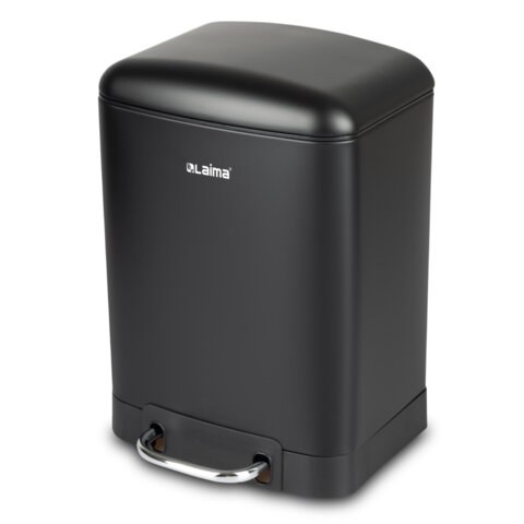 Ведро для мусора Лайма 701565 Ultra с педалью 12л, крышка с доводчиком, черное матовое, металл