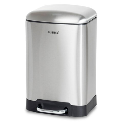Ведро для мусора Лайма 701567 Ultra с педалью 6 л, крышка с доводчиком, стальное, без отпечатков