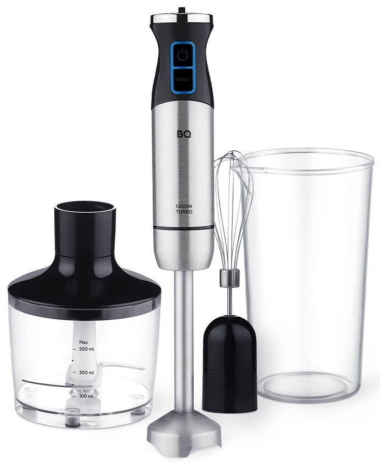 Блендер BQ HB1032SS черный -стальной, 1.2кВт, чаша измельчителя 0.5л, мерный стакан 0.6л