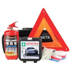 Набор автомобилиста Стандарт: аптечка МИРАЛ, огнетушитель ОП-2, знак аварийный, трос, перчатки, 46442