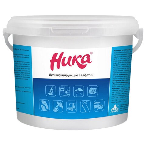 Дезинфицирующие салфеткиНика, для обработки рук и поверхностей, ведро влажные 300 шт.