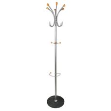 Вешалка-стойка Brabix 606437 CR-8121 на мраморном диске, металл, 6+4 крючка, цвет серебристый
