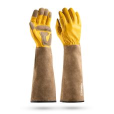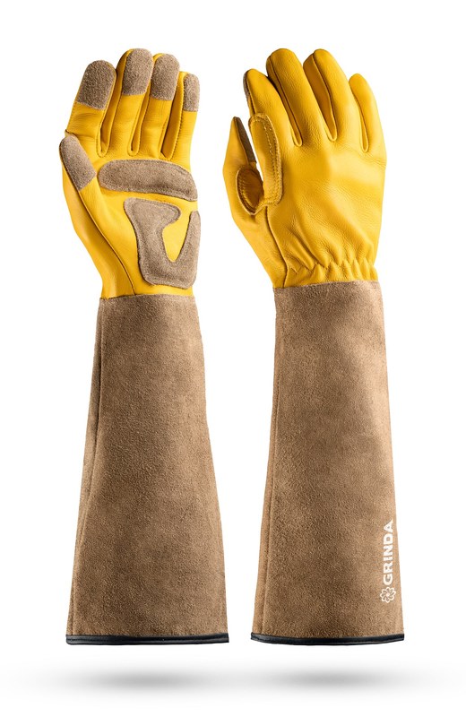 Перчатки Grinda 11303-M ROSE, M 8, кожаные садовые для колючих кустарников с увеличенной крагой, усиленная ладонь и кончики пальцев, Pro Line
