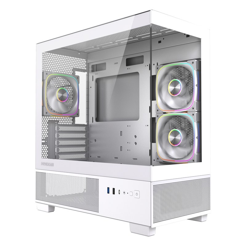 Корпус mATX без БП Powercase CVMMSW-A3 Vision Micro S3W, Tempered Glass, Type-C, 3x 120мм ARGB PWM Fan, белый