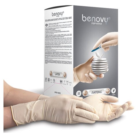 Перчатки латексные Benovy, ЧЗ, размер M 7 стерильные хирургические, комплект 50 пар 100 шт, неопудренные